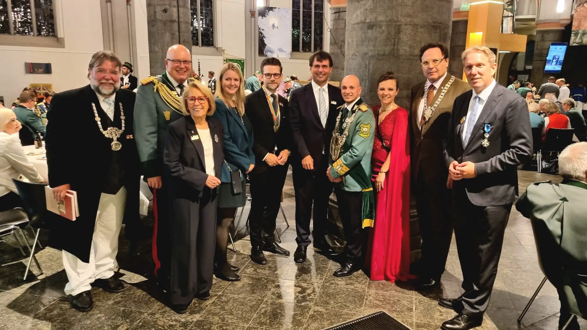 Unter den Ehrengästen waren Landtagspräsident Andre´ Kuper, NRW-Finanzminister Marcus Optendrenk und Regierungspräsident Düsseldorf Thomas Schürmann. Bezirkspräses Johannes van der Vorst, im Juni 95 Jahre alt geworden, begrüßte alle Gäste herzlich: “Schön, dass Sie da sind.”